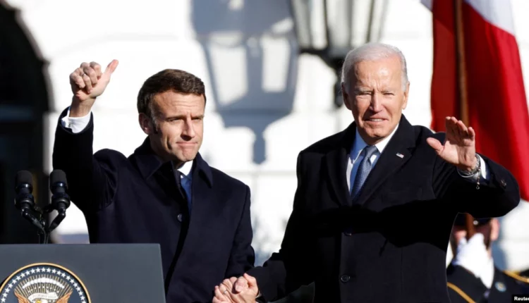 “Pháp và Hoa Kỳ đang đối mặt với tham vọng chinh phục của ông Vladimir Putin” và “bảo vệ các giá trị dân chủ và nhân quyền phổ quát vốn là trái tim của cả hai quốc gia chúng ta,” ông Biden nói.