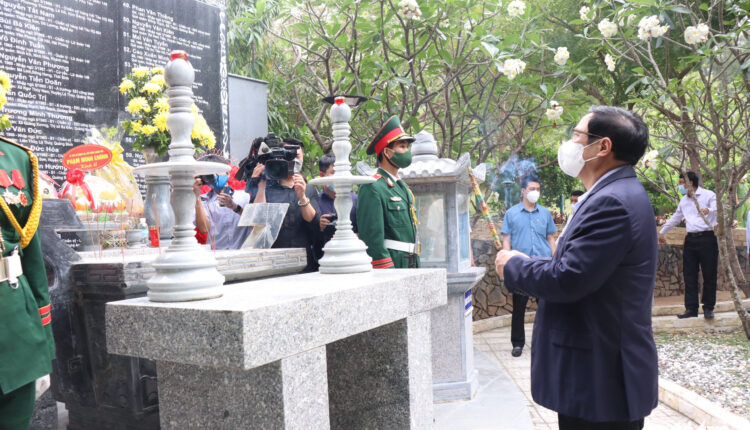 Ông cũng dâng hương tại khu mộ gió của 64 “anh hùng, liệt sĩ hy sinh trong trận chiến bảo vệ chủ quyền tại Gạc Ma – Cô Lin – Len Đao năm 1988”, thuộc huyện Trường Sa, tỉnh Khánh Hòa.