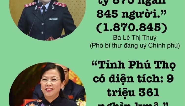 Một bà quan thì tỉnh Quảng Trị [mới] có hơn tỷ dân! Bà quan kia thì phán, tỉnh Phú Thọ [mới] rộng hơn 9 triệu ki lô mét vuông.