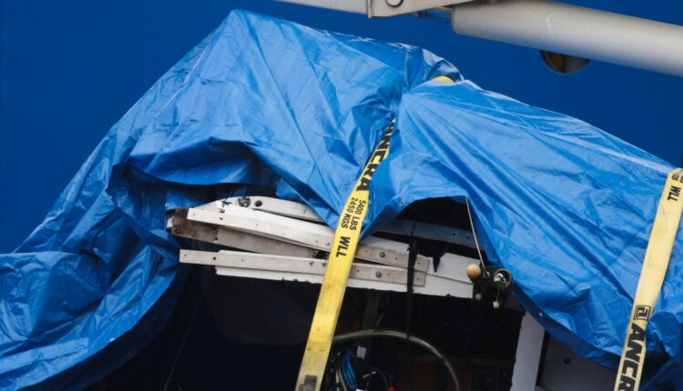 Video cho thấy bộ phận dường như là mũi của tàu Titan và những mảnh vỡ khác được bọc trong tấm bạt trắng tại bến cảng St. John ở Newfoundland vào sáng 28.6. Dây cáp xoắn và các vật dụng khác có lẽ liên quan đến động cơ của chiếc tàu lặn 6,7 m nằm trong số những mảnh vỡ được trục vớt.
