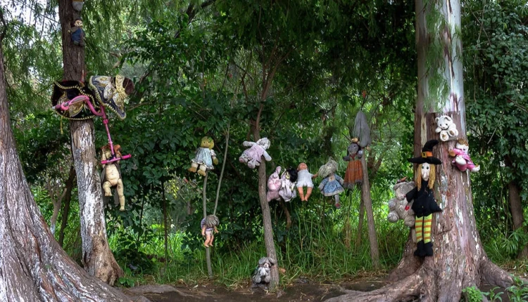 Trên Đảo Búp bê ở Thành phố Mexico, hàng trăm món đồ chơi bằng nhựa chỉ mặc mỗi giẻ rách treo lủng lẳng trên cây, với đôi mắt thủy tinh nhìn chằm chằm xuống du khách.