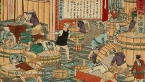 Tranh vẽ cảnh nấu sake xưa ở Nhật