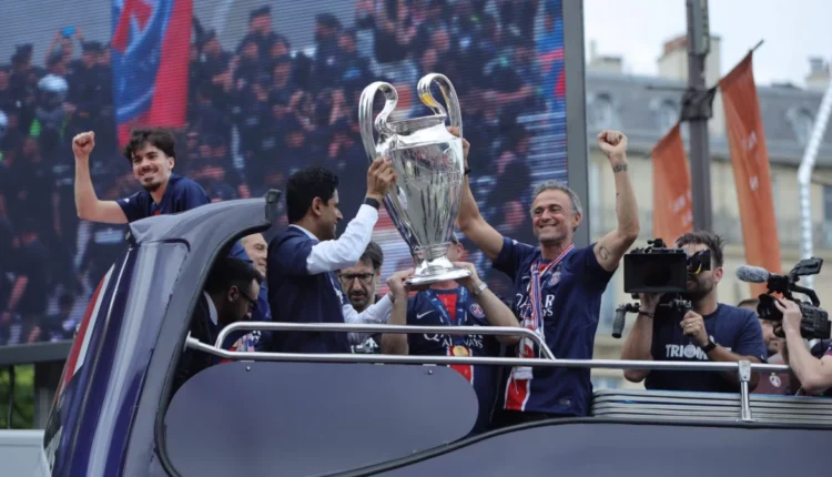 Trở về từ Munich, thầy trò Luis Enrique diễu hành với chiếc Cup Champions League trên các đường phố Paris và được Tổng thống Pháp Emmanuel Macron chào đón tại Điện Elysée.