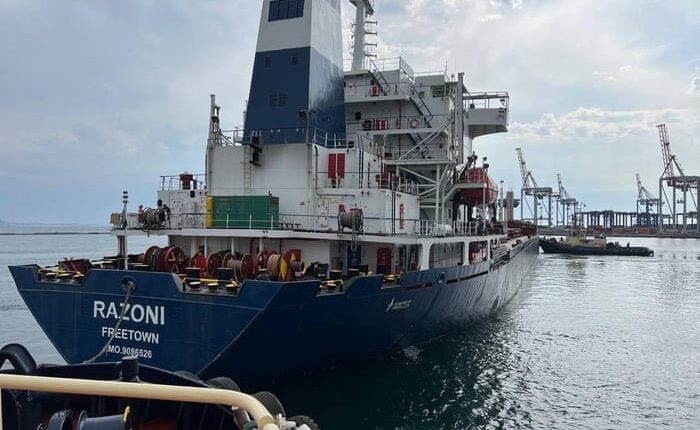 Con tàu Razoni mang cờ Sierra Leone, chở 26.000 tấn ngô, đã rời cảng Odesa, đến Lebanon. Đây là lần khởi hành đầu tiên kể từ khi cuộc xâm lược của Nga bắt đầu, theo Bộ cơ sở hạ tầng Ukraine.