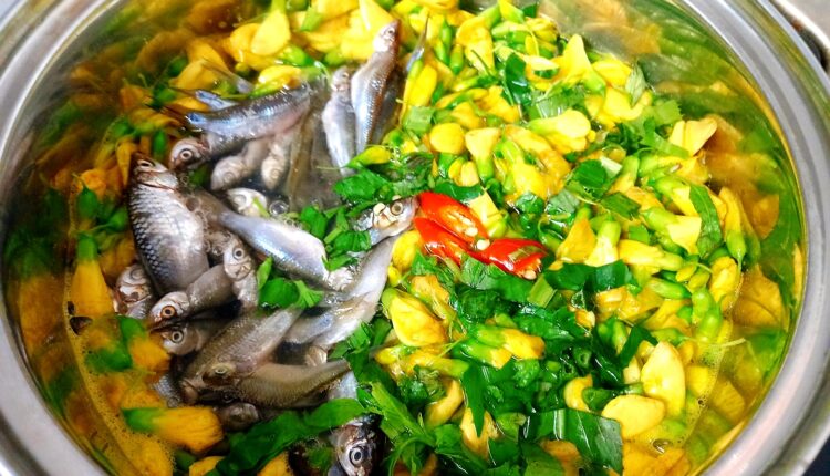 Nhắc đến cá linh người ta cũng không thể không nhắc đến loại hoa cũng gắn liền với mùa nước nổi – hoa điên điển, loài hoa nở vàng khoe sắc khắp cả mé sông, đầm lầy, ruộng nước. Hoa cho hương vị rất đặc biệt, giòn, thơm, bùi, béo lại nồng đượm hương, mang “hương đồng cỏ nội” được người dân Nam Bộ chế biến thành nhiều món ăn đặc sản bổ dưỡng.