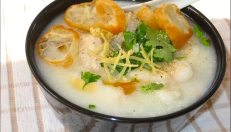 – Cùng một loại với cháo này, trong Chợ Lớn, đường Thuỷ binh cũ đêm khuya hay sáng tinh sương mới bán, là gánh “bạc của chúc” của mấy xẩm già gánh bán, cháo sơ sài, mỗi chén hai xu (0$02), vài ba “bạch quá” thả lỏng lẻo trong chén cháo trắng “bột hồ”, không thêm thắt, không mời mọc, khách đứng húp hay ngồi xề bên lề xẩm ta không cần biết, cháo thanh đạm nêm chút muối vào măn mẳn, cắn bạch quả bùi bùi, bao nhiêu mệt nhọc canh bài, buổi trác táng với mấy con phì phà chảy (tỳ bà ca nhi) đều tiêu tan, muốn bồi bổ thêm, thì đường Nguyễn Trãi, đường Đồng Khánh, qua khỏi ngã tư đại lộ Tổng đốc Phương, có quán bán cháo Quảng Đông nấu với lòng heo, đây là cháo thập cẩm có đủ bao tử, gan, dồi trường và phèo, bao nhiêu ấy chưa đủ tẩm bổ khách làng chơi đàn đúm, lại còn thêm một hột gà tươi để lấy sức phung phí từ đêm hôm, rõ là cháo Tàu, cháo Ngô, tướng dịch chữ của Pháp: “C est le chao” (hỗn độn, hỗn mang), nếu dịch “đó là nồi cháo ngô” cũng nên thông qua và cho là được được!