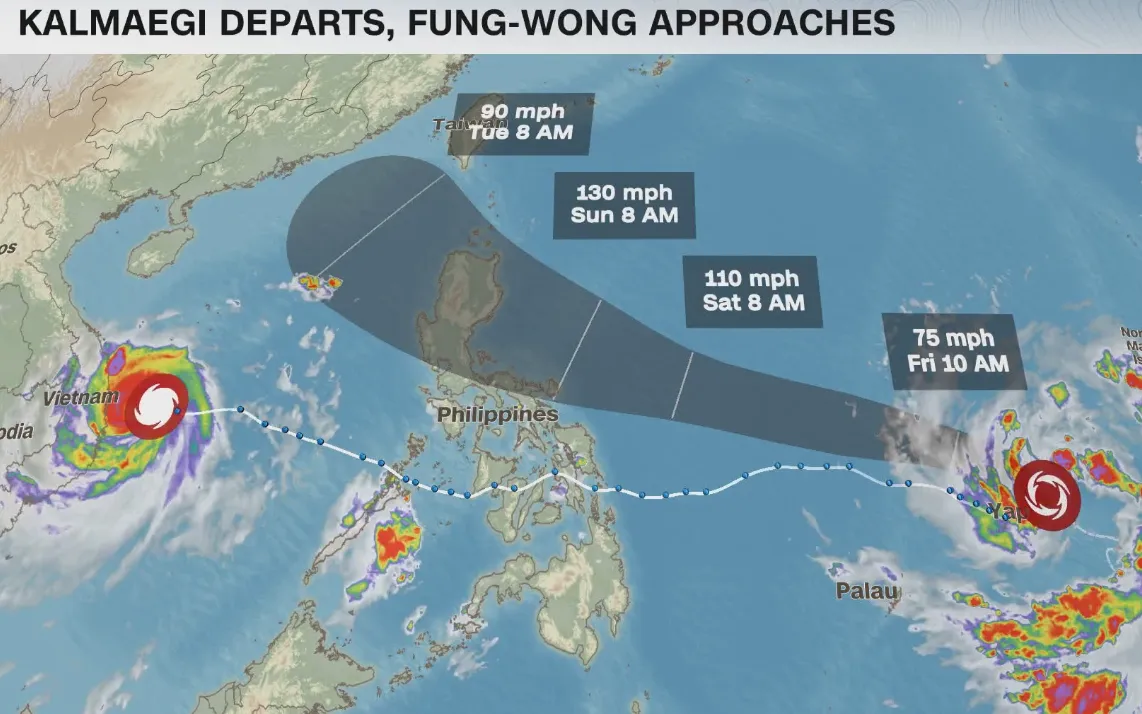 Siêu bão Fung-Wong xuất hiện chỉ vài ngày sau khi siêu bão Kalmaegi tàn phá nghiêm trọng Philippines, khiến gần 200 người thiệt mạng và hàng chục nghìn ngôi nhà bị hư hại. Việc hai cơn bão mạnh liên tiếp đổ bộ trong thời gian ngắn đã khiến công tác khắc phục hậu quả và ứng phó thiên tai của quốc gia Đông Nam Á này gặp nhiều khó khăn.