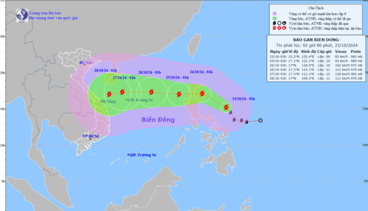 Dự báo khoảng đêm 24, ngày 25/10, bão Trà Mi sẽ đi vào Biển Đông, trở thành bão số 6 của Việt Nam năm nay. Bão có thể tăng cấp nhanh, hướng về phía quần đảo Hoàng Sa của Việt Nam.