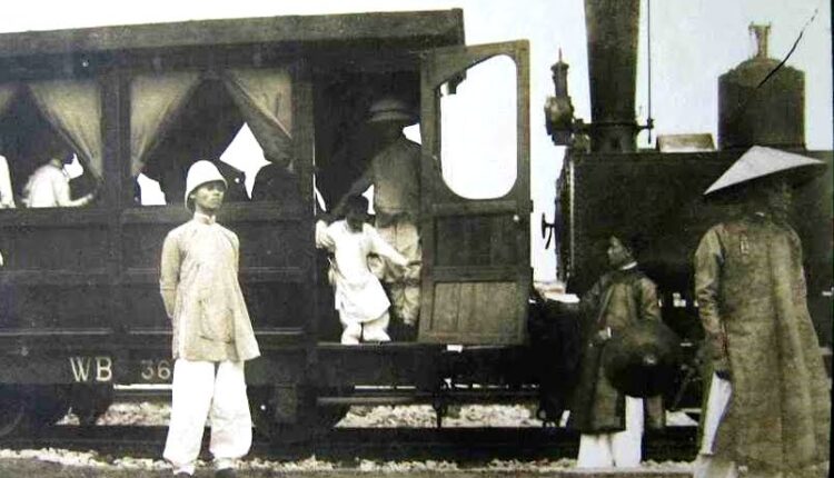 Tàu lửa từ Đà Nẵng đi Huế. Những nhân viên hỏa xa đang tất bật cho chuyến khởi hành. Thị dân Đà Nẵng phần lớn đi chân đất, nam nữ đều đội nón lá có vành rộng, đi hoặc đứng đều có thói quen chắp tay phía sau!