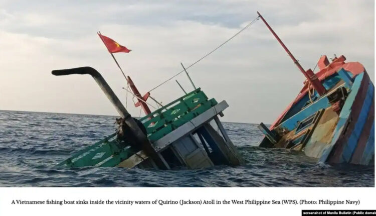 Hải quân Philippines cho biết hôm 1/8 rằng một tàu cá Việt Nam bị chìm trước đó 2 ngày gần một bãi cạn ở khu vực có tên là Biển Tây Phippines, hai trang tin Manila Bulletin và Inquirer đưa tin cùng ngày.