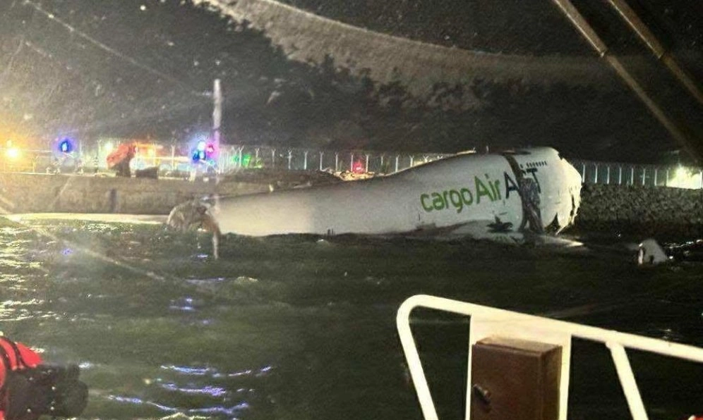 Boeing 747 trượt khỏi đường băng, lao xuống biển tại Hồng Kông