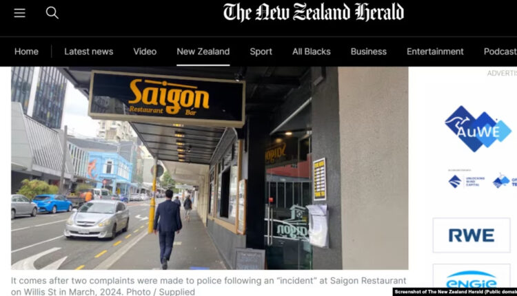 The New Zealand Herald, Scoop và một số trang tin tiếng Anh trích dẫn Ủy viên Cảnh sát Richard Chambers nói trong một thông cáo rằng hai quan chức đó là thành viên của một phái đoàn Việt Nam đã ăn tối tại Nhà hàng Saigon vào tháng 3/2024 và sau đó cảnh sát đã nhận được hai đơn khiếu nại về hành vi tấn công.