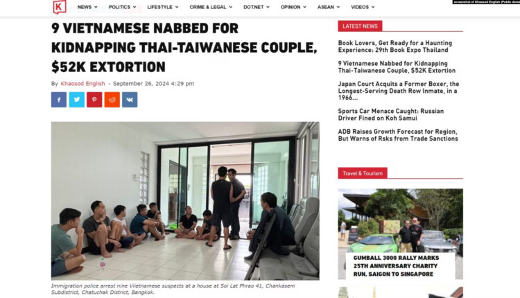 Chín người Việt Nam bị bắt tại Thái Lan vì tội bắt cóc tống tiền