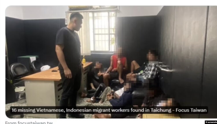Trong ngày 28/6, cảnh sát thành phố Đài Trung của Đài Loan cho biết họ đã tìm thấy 16 người lao động nhập cư từ Việt Nam và Indonesia mà trước đó nhóm người này bị xem là đã bỏ đi mất tung tích, các trang CNA News và Focus Taiwan đưa tin.
