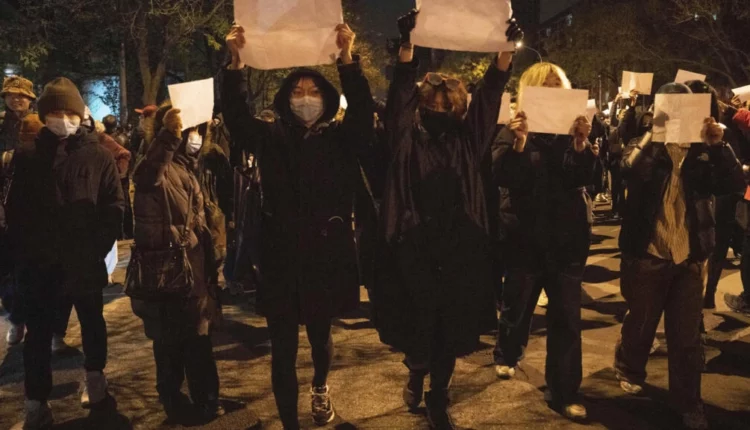 Cuối tuần qua, người biểu tình đã hô to khẩu hiệu, “Hãy dỡ bỏ lệnh phong tỏa!” tại một thành phố ở khu vực phía tây của Trung Quốc, trong khi ở Thượng Hải, trung tâm tài chính, người biểu tình giơ cao những tờ giấy trắng như một sự thể hiện bất đồng quan điểm thầm lặng.