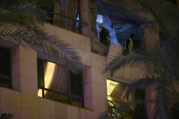 Lực lượng cứu hộ Lebanon kiểm tra một phòng khách sạn ở Beirut bị tấn công bởi cuộc không kích của Israel.