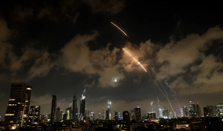 Hệ thống phòng không của Israel đã cố gắng đánh chặn các tên lửa bay qua Tel Aviv. Tiếng nổ và còi báo động vang lên khắp thành phố.