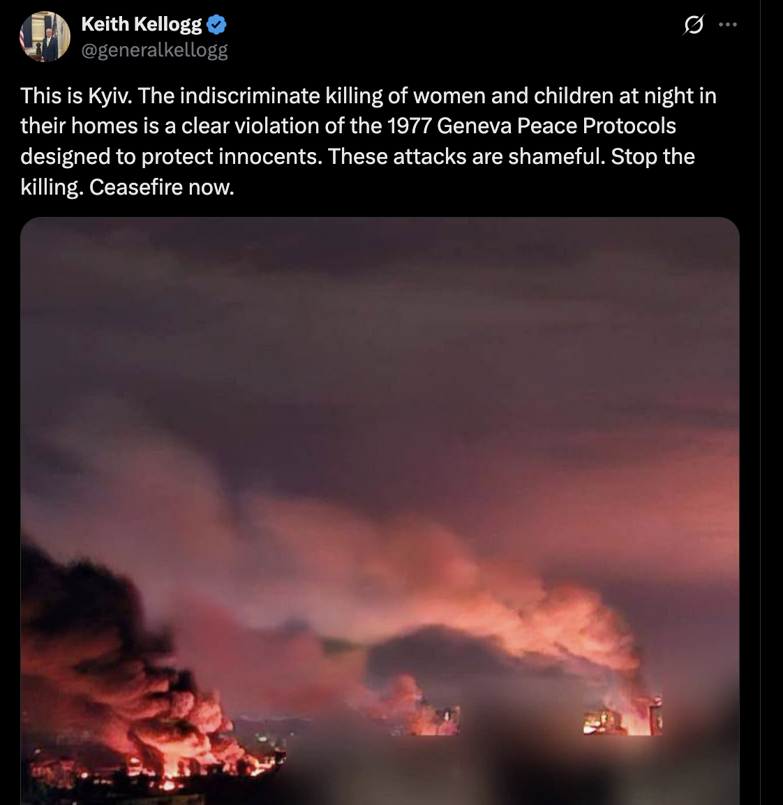 Bình luận về vụ việc, Đặc phái viên của Tổng thống Mỹ về Ukraine – ông Keith Kellogg nói rằng các cuộc tấn công vào dân thường “vi phạm rõ ràng Công ước Geneva năm 1977”.