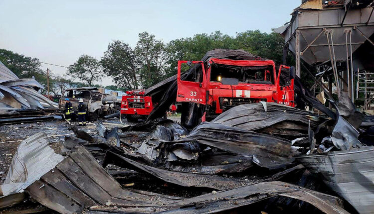 Các quan chức Ukraine không cung cấp nhiều thông tin chi tiết. Cảnh sát cho hay các kho chứa ngũ cốc cùng với các thùng chứa đã bị tấn công, gây ra hỏa hoạn. Kiper, vị thống đốc khu vực, cho biết các vụ cháy đã làm 7 người bị thương, trong đó, một người trong tình trạng nguy kịch.