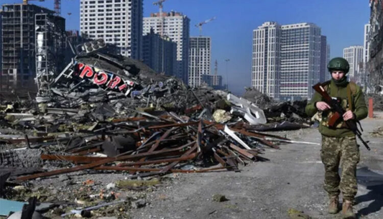 Ảnh: Khu trung tâm thương mại ở Kiev bị phá hủy sau một trận không kích của Nga. Ảnh: REX