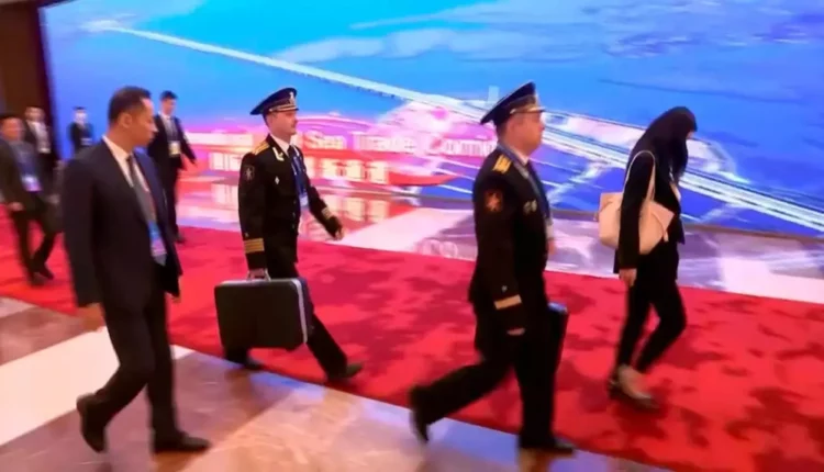 Truyền thông Nga đăng tải một đoạn video hiếm hoi cho thấy cảnh sĩ quan mang theo vali hạt nhân tháp tùng Tổng thống Nga Vladimir Putin trong chuyến thăm Trung Quốc ngày 18/10.