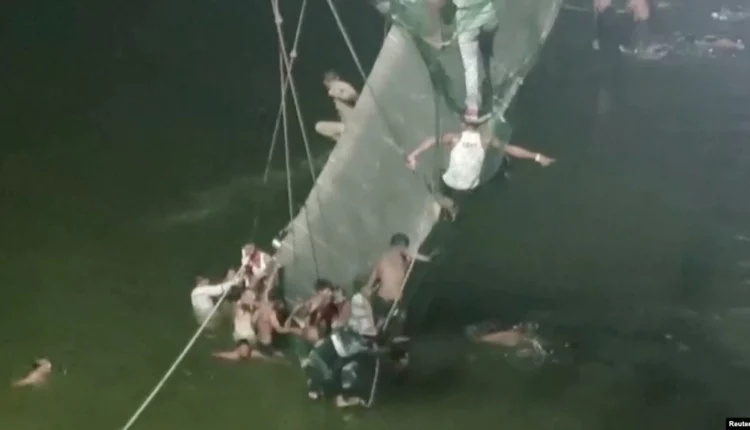 Sập cây cầu chật kín người đi lễ hội ở Ấn Ðộ, Ít nhất 90 người thiệt mạng, hàng trăm người rơi xuống sông