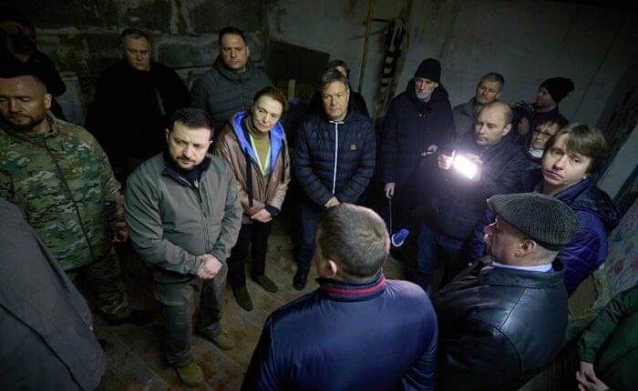 Phó Thủ tướng Đức Robert Habeck và Tổng thư ký Hội đồng Châu Âu Marija Pejčinović Burić đã bất ngờ đến Ukraine và tham gia chuyến thăm làng ở vùng Chernihiv. Zelenskiy cảm ơn Habeck và Burić đã tham gia dự án tái thiết Ukraine, ông nói: