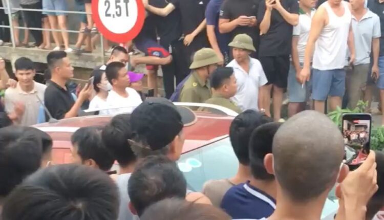 Liên quan đến thông tin nêu trên, mạng xã hội cũng xuất hiện clip dài gần 6 phút phản ánh việc nhiều người vây quanh chiếc xe ô tô Fadil màu đỏ mang biển số 30G-579.28 vì cho rằng những người trong xe đã dùng súng bắn trộm dê của người dân trên địa bàn.