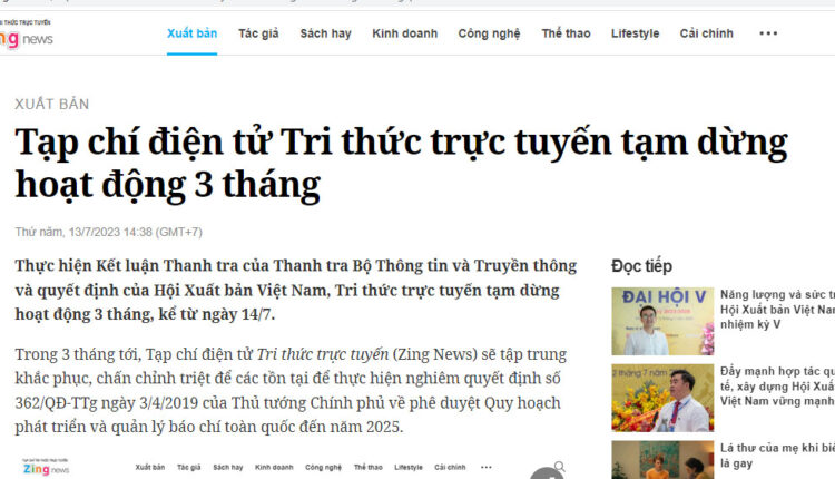 Tạp chí trực tuyến nổi tiếng của Việt Nam Zing News, thuộc sở hữu của một trong những tập đoàn kỹ thuật số hàng đầu VNG, hôm thứ Năm (13/7) cho biết họ phải đình chỉ xuất bản trong ba tháng sau cuộc điều tra của chính phủ.