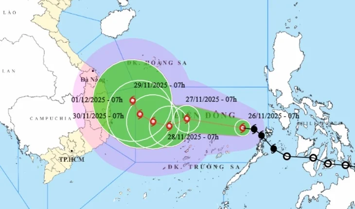 Việt Nam cảnh báo trong khoảng ngày 27 đến 28-11, khu vực giữa Biển Đông (bao gồm vùng biển phía Bắc đặc khu Trường Sa) có khả năng chịu tác động của gió mạnh cấp 10 – 11, giật cấp 14, sóng biển cao 7 – 9m, biển động dữ dội. Tàu thuyền hoạt động trong các vùng nguy hiểm nói trên đều có khả năng chịu tác động của dông, lốc, gió mạnh, sóng lớn.