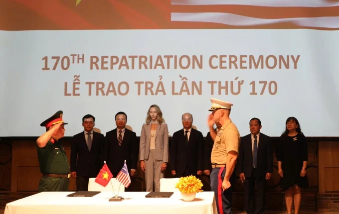 Lễ trao trả hài cốt quân nhân Mỹ mất tích trong chiến tranh ở Việt Nam (MIA) lần thứ 170 diễn ra tại Đà Nẵng hôm 25/7, với sự tham gia của Ban giám đốc Cơ quan Việt Nam tìm kiếm người mất tích (VNOSMP), cùng đại diện các cơ quan Việt Nam gồm Bộ Ngoại giao, Bộ Quốc phòng và Bộ Công an.
