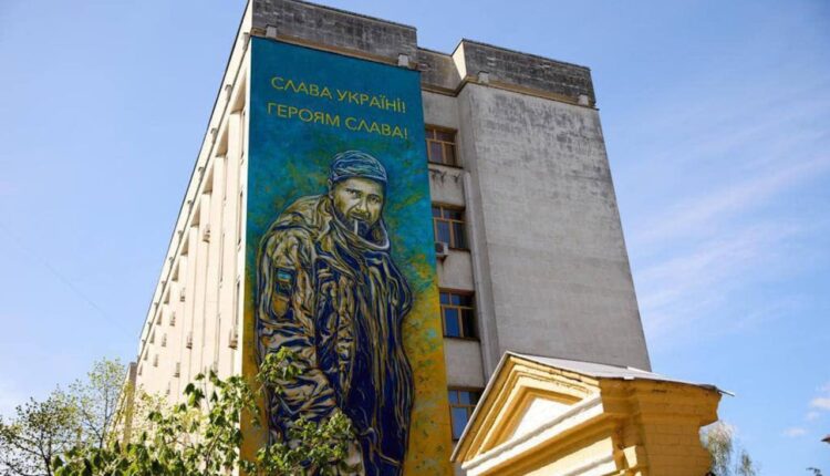 Bên vách tường một tòa nhà ở Kiev, khuôn mặt hốc hác của một người lính nhìn chằm chằm vào khoảng không. Đó là bức tranh tường, cao khoảng năm tầng, vẽ người lính Ukraine Matsiyevsky , ông bị bắt và bị lực lượng Nga hành quyết vào năm ngoái sau khi hét lên “Vinh quang cho Ukraine”.