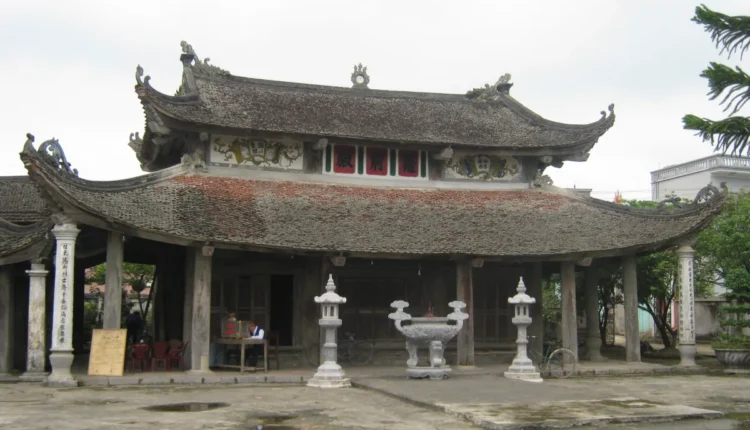 – Cổng đình có kiểu dáng không chừng. Cổng đẹp thì có trụ cột, trên có mái lợp ngói, hoặc trên hai trụ có đặt cặp lân bằng sành tráng men.