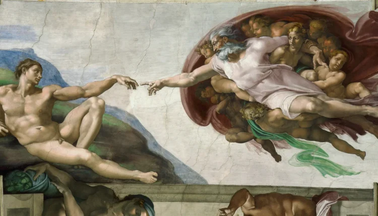 Năm 1508, ông được gọi trở lại Rome để vẽ trần Nhà nguyện Sistine, không gian thánh hiến chính ở Vatican. Phải mất nhiều năm để hoàn thành, những bức bích họa hoành tráng trên trần nhà này là một trong những tác phẩm đáng nhớ nhất của Michelangelo. Trung tâm trong hệ thống trang trí phức tạp gồm vô vàn nhân vật này là chín bức vẽ mô tả lịch sử thế giới theo Kinh Thánh. Nổi tiếng nhất trong số đó là The Creation of Adam (Tạo dựng Con người), bức tranh với cảnh Thiên Chúa và Adam giương tay về phía nhau.