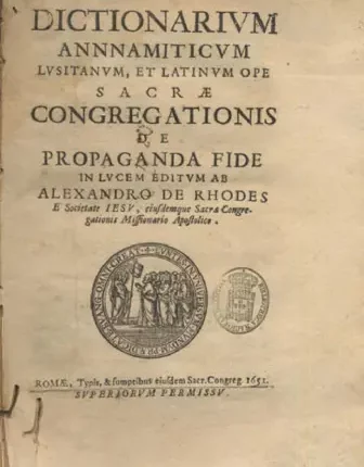 Kể từ năm 1624, có giáo sĩ Alexandre de Rhodes, quê quán Avignon (Pháp quốc), thuộc Dòng Tên của Bồ-đào-nha, đến Faifo, tức Hoài Phố, trên sông Hoài Giang tức là sông Thu Bồn ngày nay. Xứ này thuộc Đàng Trong do chúa Nguyễn quản nhiệm. Giáo sĩ A-lịch-sơn Đắc-lộ bắt đầu học tiếng Việt với giáo sĩ François de Pina và một ngời Việt mới theo đạo. Sau đó giáo sĩ Đắc-lộ đã có thể thuyết giảng bằng tiếng Việt và dựa trên hai quyển tự vụng (vocabulaire) của các giáo sĩ Gaspard d’Amaral và Antoine de Barbosa, để soạn thảo quyền tự điển Việt-bồ-la (Dictionarium Annamiticum Lusitanum et Latinum), đã được Giáo hội ấn hành năm 1651 tại Roma.